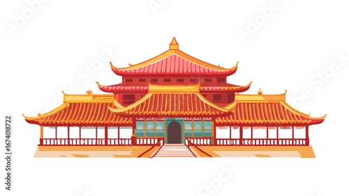 © RABBY, Fototapeta premium Ornate Red And Yellow Pagoda Building architecture asian