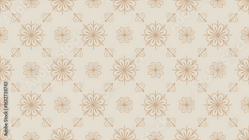 © AbbasAmira, Fototapeta premium Ornate, repeating floral pattern on beige background.