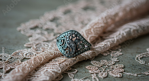 © Ndrudus, Fototapeta premium Ornate ring on lace