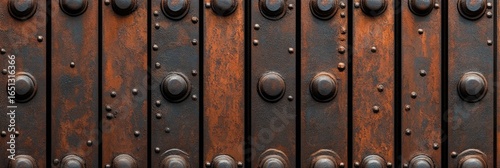 Fototapeta premium Ornate, rusty metal panels with studded details