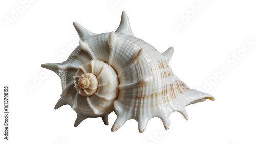 © MSTSHEWLI, Obraz premium Ornate Spiral Seashell With Spikes isolated on a transparent background natural texture