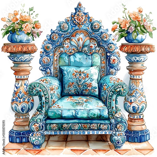 © NatthaphonSiri, Fototapeta premium Ornate Tile Throne with Floral Accents.