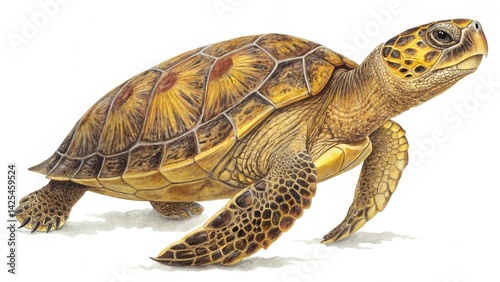 © MDMEHEDI, Fototapeta premium Ornate Turtle Side View with Intricate Shell on White Background
