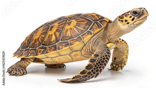 © MDMEHEDI, Obraz premium Ornate Turtle Side View with Intricate Shell on White Background