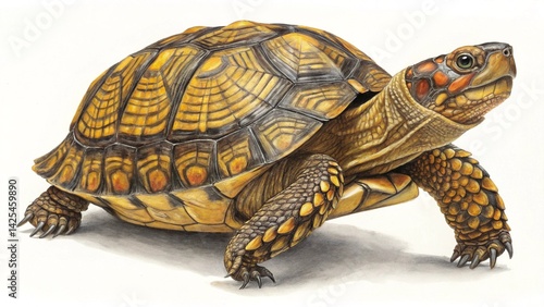© MDMEHEDI, Obraz premium Ornate Turtle Side View with Intricate Shell on White Background