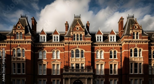 Fototapeta premium Ornate victorian red brick apartment building facade with intricate...