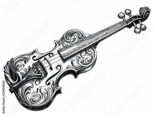Obraz premium Ornate Violin with Detailed Scrollwork and Elegant Design Showcases Craftsmanship Brilliantly