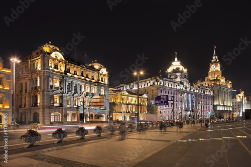 Naklejka premium Ornate western colonial architecture at Bund boulevard, Shanghai, China.