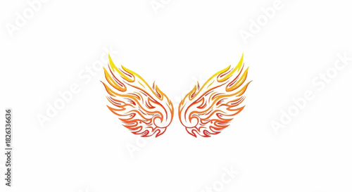 © Mawan, Fototapeta premium Ornate Wings with Fiery Gradient Design on White Background.