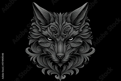 Obraz premium Ornate wolf head, dark background, intricate floral design.