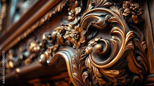 Fototapeta premium Ornate wooden carving detail. Intricate, detailed, and rich in design
