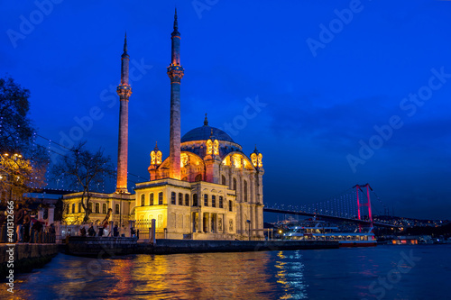 © Marco Gabbin, Naklejka premium Ortaköy Mosque by night,Istanbul, Turkey,Turkish