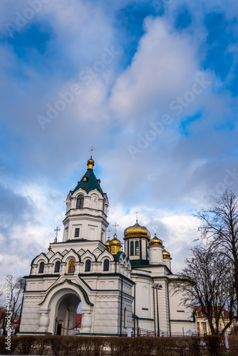 © Fotoforce, Fototapeta premium Orthodox church in Sokolka / Poland. Afternoon shots on a winter day. The subject was photographed against a slightly cloudy blue sky.