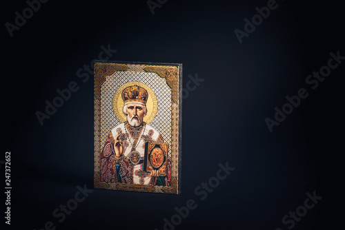 Obraz premium Orthodox icon of St. Nicholas on a black background.