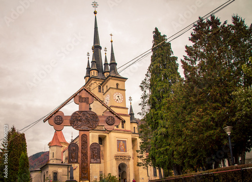 © rusty elliott, Obraz premium Orthodox wooden cross and Church