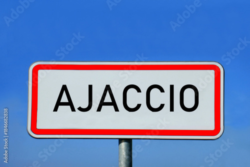 © Elke Hötzel, Obraz premium Ortsschild Ajaccio