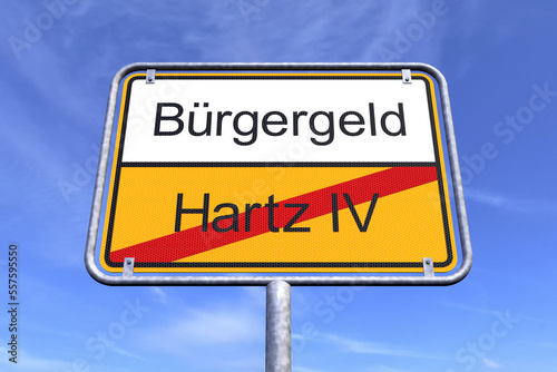 Obraz premium Ortsschild - Ortstafel - Bürgergeld - Hartz IV - Himmel - Wolken