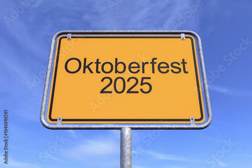 Obraz premium Ortsschild - Ortstafel - Oktoberfest - 2025 - Himmel - Wolken