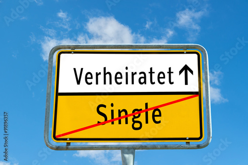 © Animaflora PicsStock, Obraz premium Ortstafel Verheiratet/Single