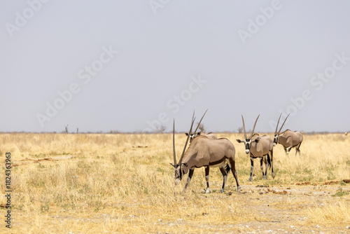 Fototapeta premium oryx antelopes in grassland of etosha np