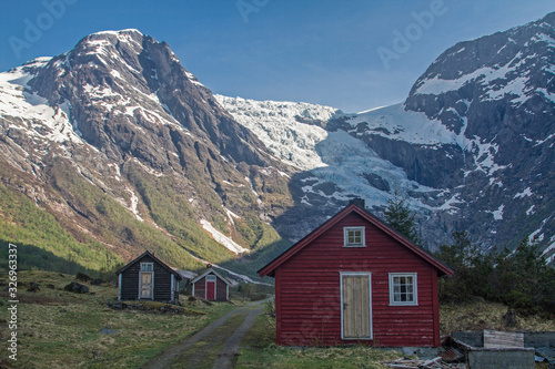 Obraz premium Osada alpejska u podnóża Jostedalsbreen