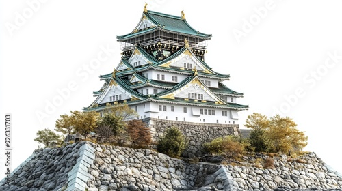 © Humeyra, Obraz premium Osaka Castle an ancient Japanese castle in Osaka Japan Isolated on a white background