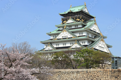 © mfs_plus, Fototapeta premium Osaka castle and cherry blossom
