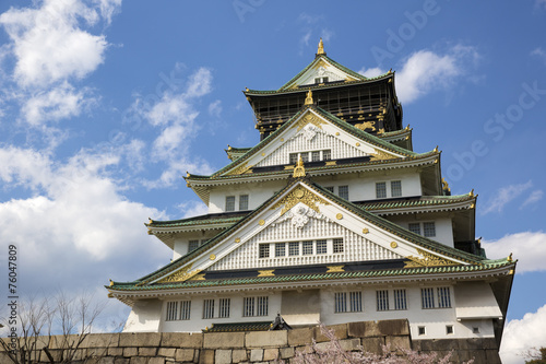 Fototapeta premium Osaka Castle in Japan during cherry blossom season in spring.