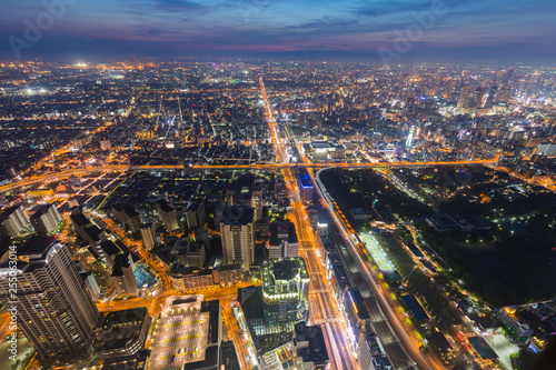 Obraz premium Osaka cityscape beautiful night view of Shinsekai districts, Tennoji, Osaka, Japan. view from Abeno harukas.