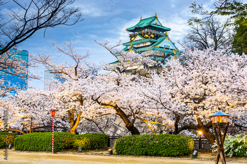 © SeanPavonePhoto, Obraz premium Osaka, Japonia na zamku w Osace w sezonie wiosennym.