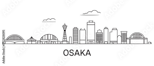 Naklejka premium Osaka Line Art skyline. Black Osaka city. with white background