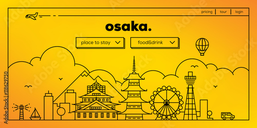 © Kürşat Ünsal, Obraz premium Osaka Modern Web Banner Design with Vector Linear Skyline