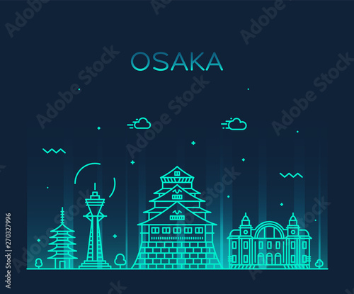 Fototapeta premium Osaka skyline Japan trendy city vector linear