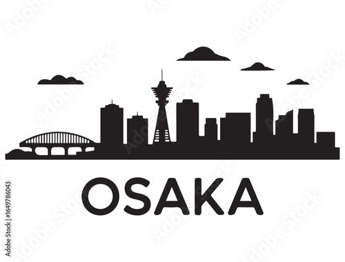 © Nargis, Naklejka premium Osaka skyline silhouette. Black Osaka city. Vector black silhouette. with white background