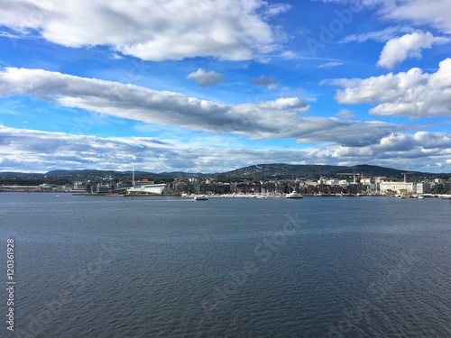 Fototapeta premium Oslo, the capital of Norway. Photo taken from the fjord in