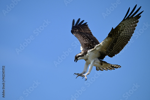 Obraz premium Osprey Bird in flight with wings spread and talons out as it descends downwards