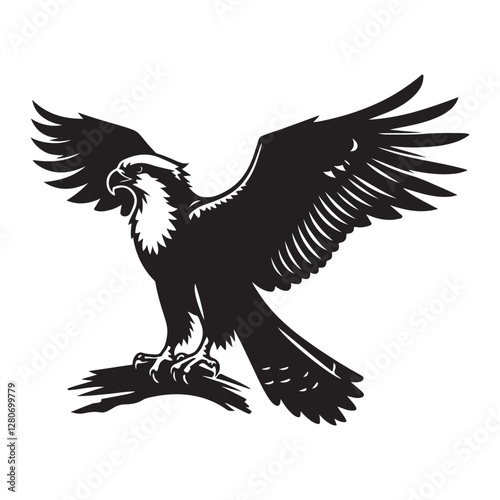 © Faysal, Obraz premium Osprey bird Silhouette Vector Illustration, Solid White Background.