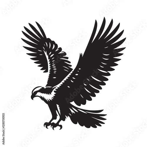 © Faysal, Obraz premium Osprey bird Silhouette Vector Illustration, Solid White Background.