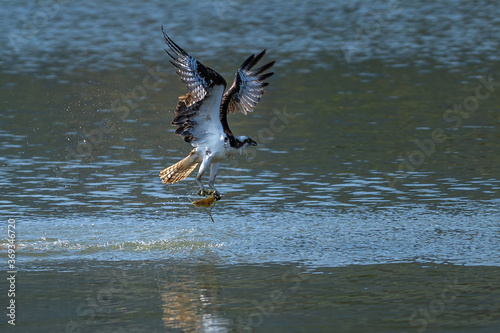 Fototapeta premium Osprey catching a fish and taking off from water.