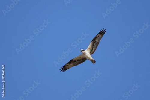 Fototapeta premium Osprey flying with wings spread under the open sky