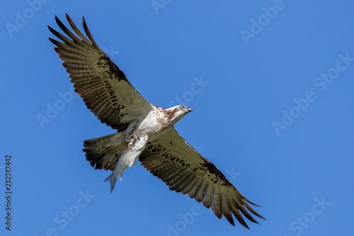 Fototapeta premium Osprey in flight with mullet