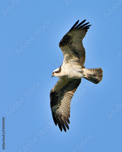 Obraz premium Osprey soaring majestically in a clear blue sky