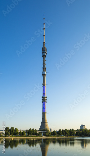 © Olonkho, Fototapeta premium Ostankino tower and elevated rapid transit system in Moscow, Russia
