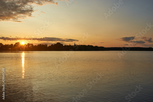Naklejka premium Ostashkov, Sunrise on lake Selige
