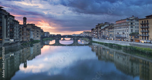 © sergejson, Obraz premium Ostatnie światła na niebie nad rzeką we Florencji we Włoszech
