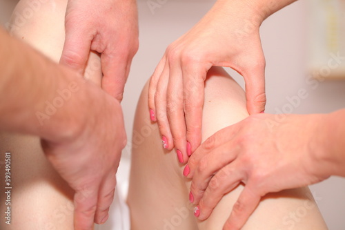 © Elroi, Obraz premium osteopath master massages the client's leg in the massage room