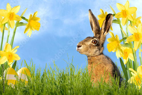 © Photo-SD, Fototapeta premium Osterhase mit Osterglocken