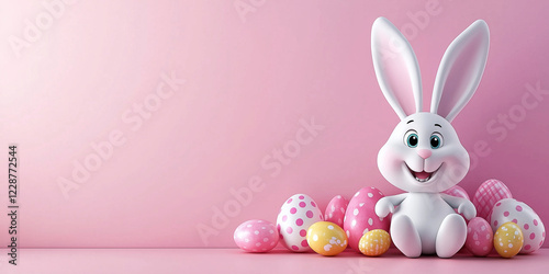 © Twopictures, Obraz premium Osterkarte - Lachender Osterhase auf neutralen Hintergrund. Osterbanner. Oster Comic