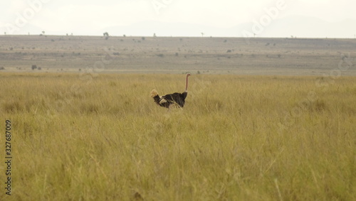 Fototapeta premium Ostrich in african savanna in Kenya in Africa.