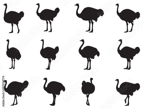 © Muhammad, Fototapeta premium OSTRICH SILHOUETTE WHITE BACKGROUND